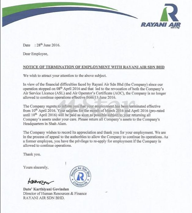 Rayani Air Arah Berhenti Kerja Batal Surat Tamat Khidmat Semasa Mstar